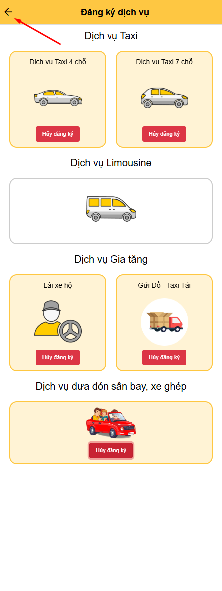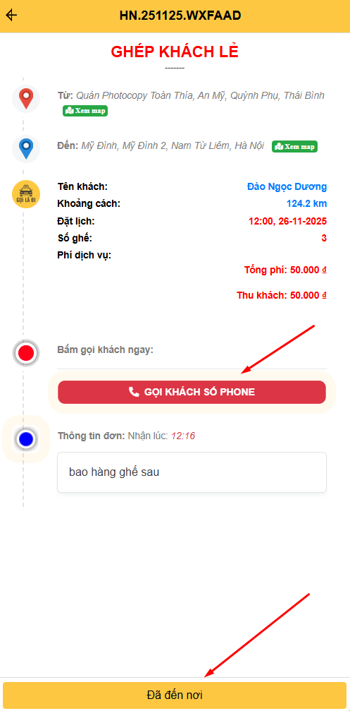 - Khi đã đến điểm đón khách, nhấn 'Đã đến nơi'