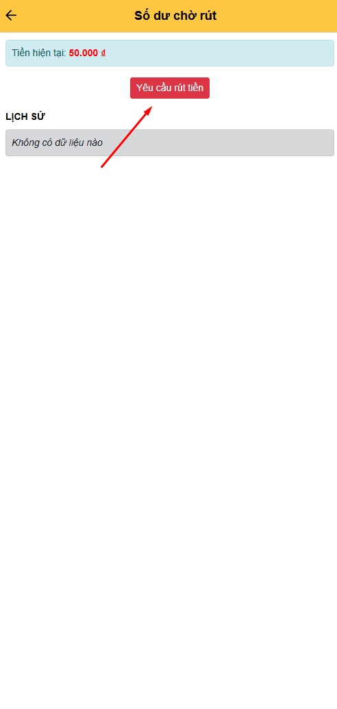 - Nhấn vào 'Yêu cầu rút tiền' để thực hiện rút tiền