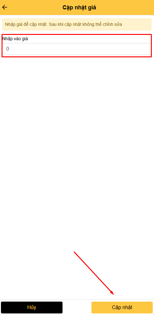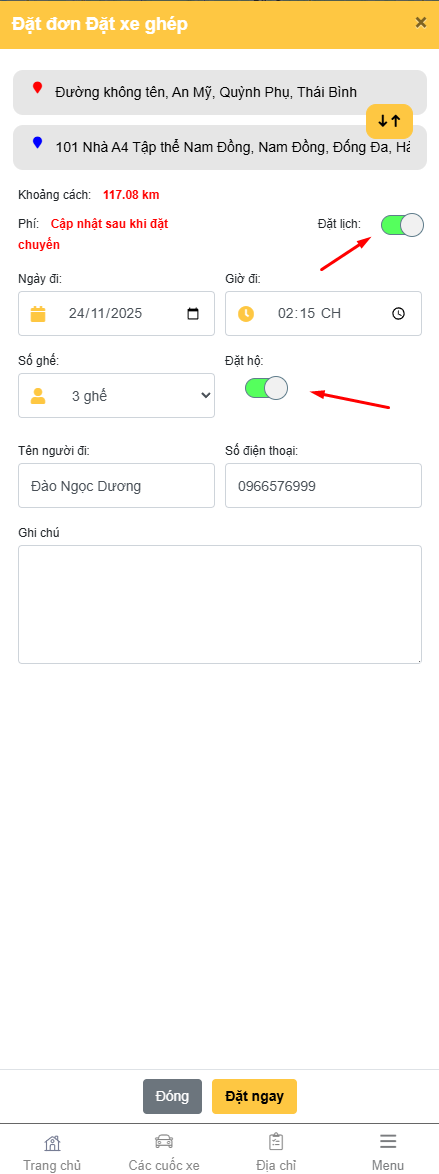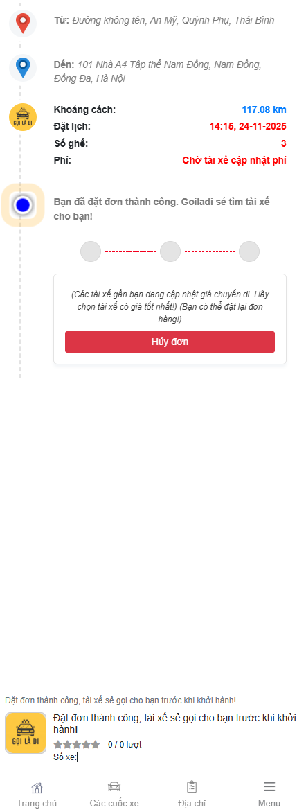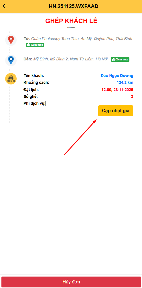 - Nhập giá chuyến đi và nhấn nút 'Cập nhật'