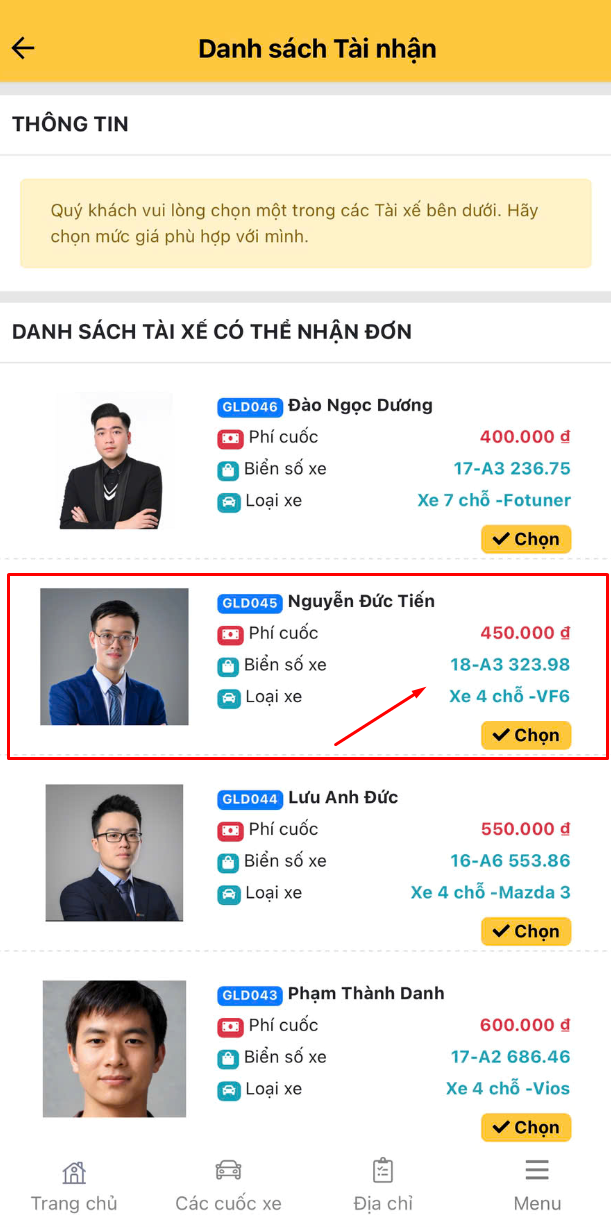 - Nhiều tài xế có thể báo giá cùng 1 chuyến. Khách hàng được lựa chọn tài xế phù hợp