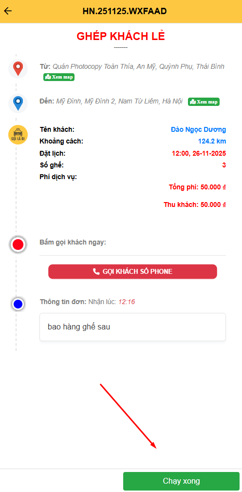 - Sau khi hoàn thành chuyến, nhấn 'Chạy xong'